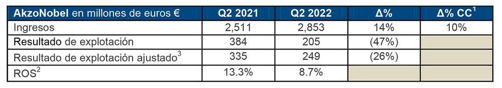 El informe del segundo trimestre de 2022 puede verse y descargarse en: akzo.no/Q2-2022-results [1] Los cálculos en moneda constante excluyen el impacto de las variaciones de los tipos de cambio.
