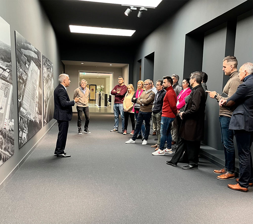 tour por las instalaciones de la fábrica, el recinto de exposición de sus muebles de cocina, el centro de formación y el laboratorio .