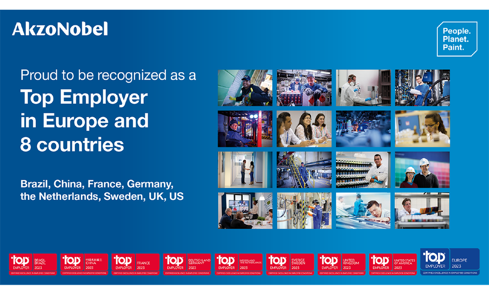 AkzoNobel se clasifica como Top Employer europeo debido a que cinco de los países certificados están en Europa .