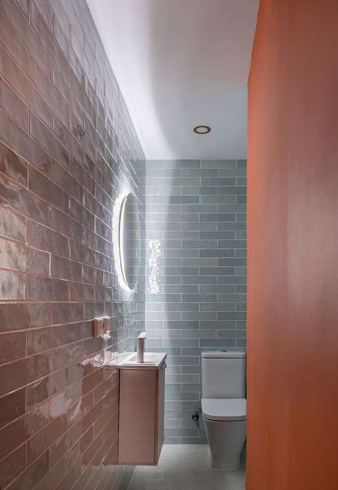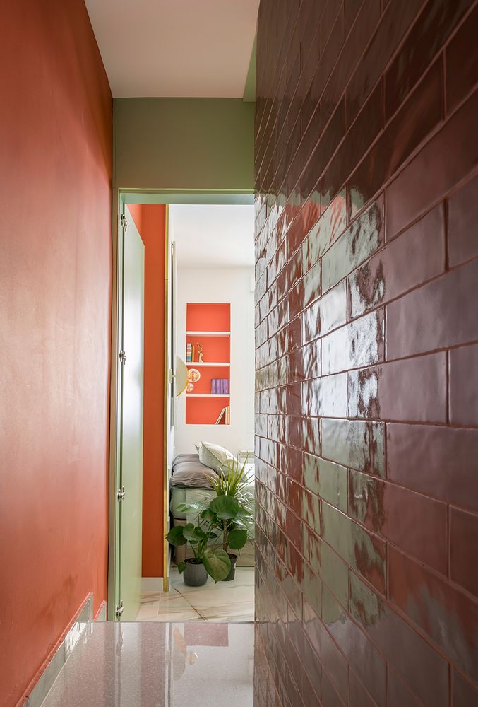 Además de los colores intensos, se decantaron por una cerámica vidriada que reflejara la luz para conseguir un efecto de mayor amplitud y movimiento.