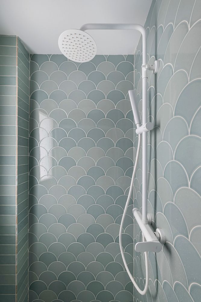 OOIIO Arquitectura escogió la colección Dynamic de la marca Carmen de APE Grupo , unas piezas esmaltadas y de pequeña escala en forma de escamas y también en formato rectangular.