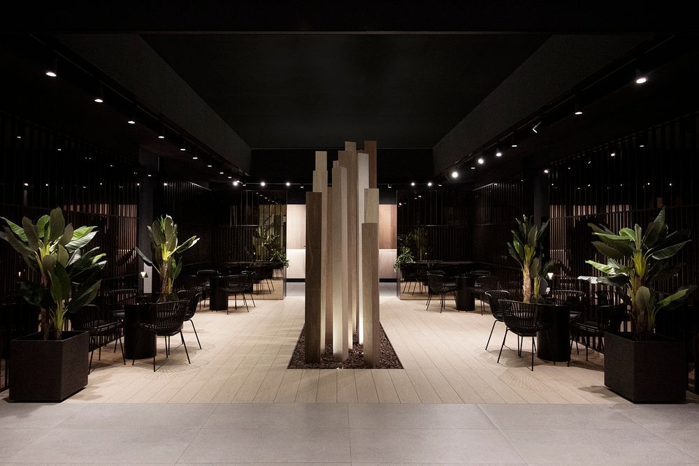 El proyecto "Connect with Heart", como así se denomina el singular espacio, "recrea un espacio reminiscente de una casa", como define SUMMUNSTUDIO, tratando de conectar un tradicional patio con lo contemporáneo a través de una potente fachada de un marcado carácter arquitectónico. "Los muros exteriores del espacio se transforman en una celosía permitiendo entrever en su interior e invita al visitante conocer el corazón del lugar", añaden.