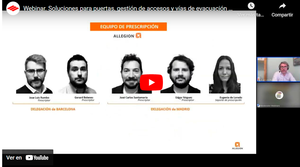 Vídeo webinar "Soluciones para puertas, gestión de accesos y vías de evacuación mediante la prescripción"