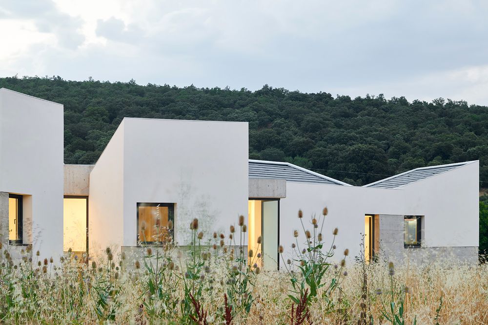 Las cajas blancas se orientan hacia las vistas del monte del parque natural, como si de objetivos fotográficos se trataran, llevando hasta el extremo el aprovechamiento de la relación visual con el paisaje.