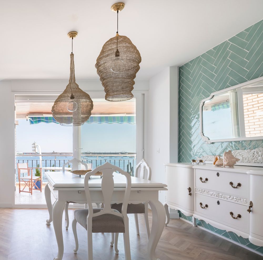 Los propietarios de este apartamento de veraneo situado a pie de mar en un edifico de los años 60, querían realizar una reforma integral bajo los cánones contemporáneos a la vez que conservar unos tradicionales muebles de madera oscura con formas y dimensiones propias del siglo pasado que tenían un gran valor sentimental para ellos. La cerámica de