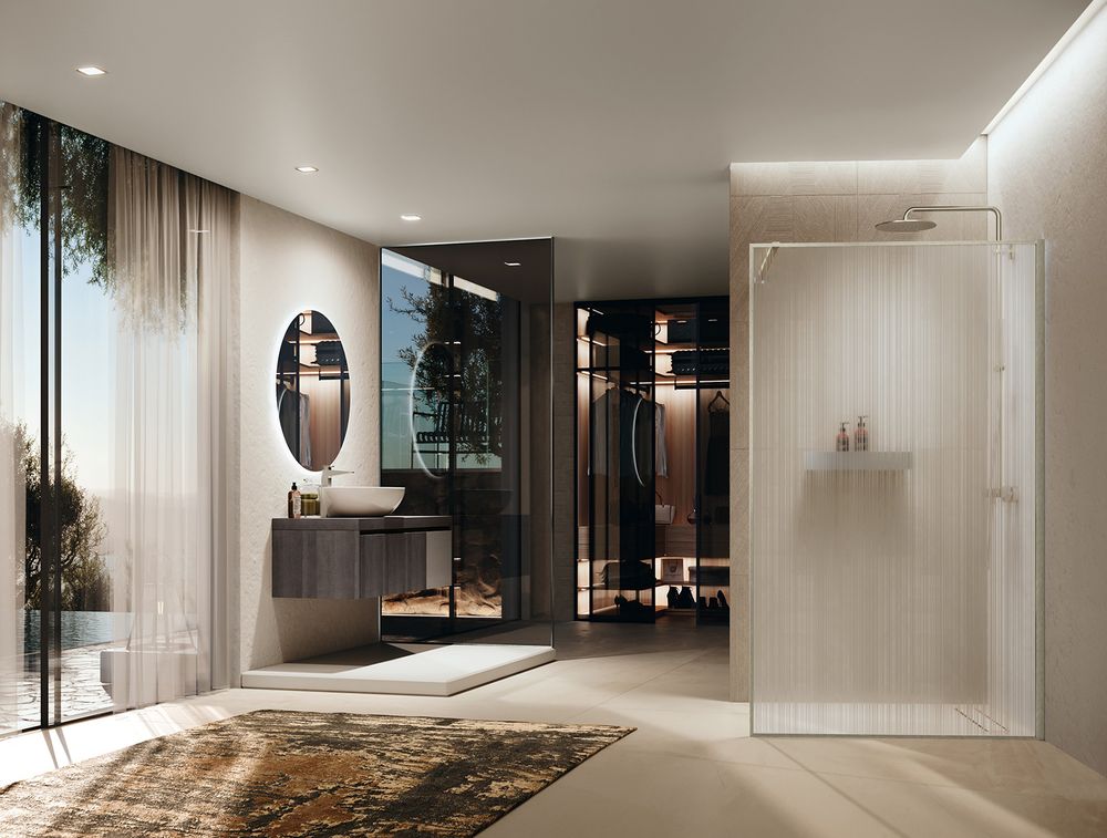 presenta su amplia gama de nuevas soluciones y acabados en la categoría de espacios abiertos de ducha .