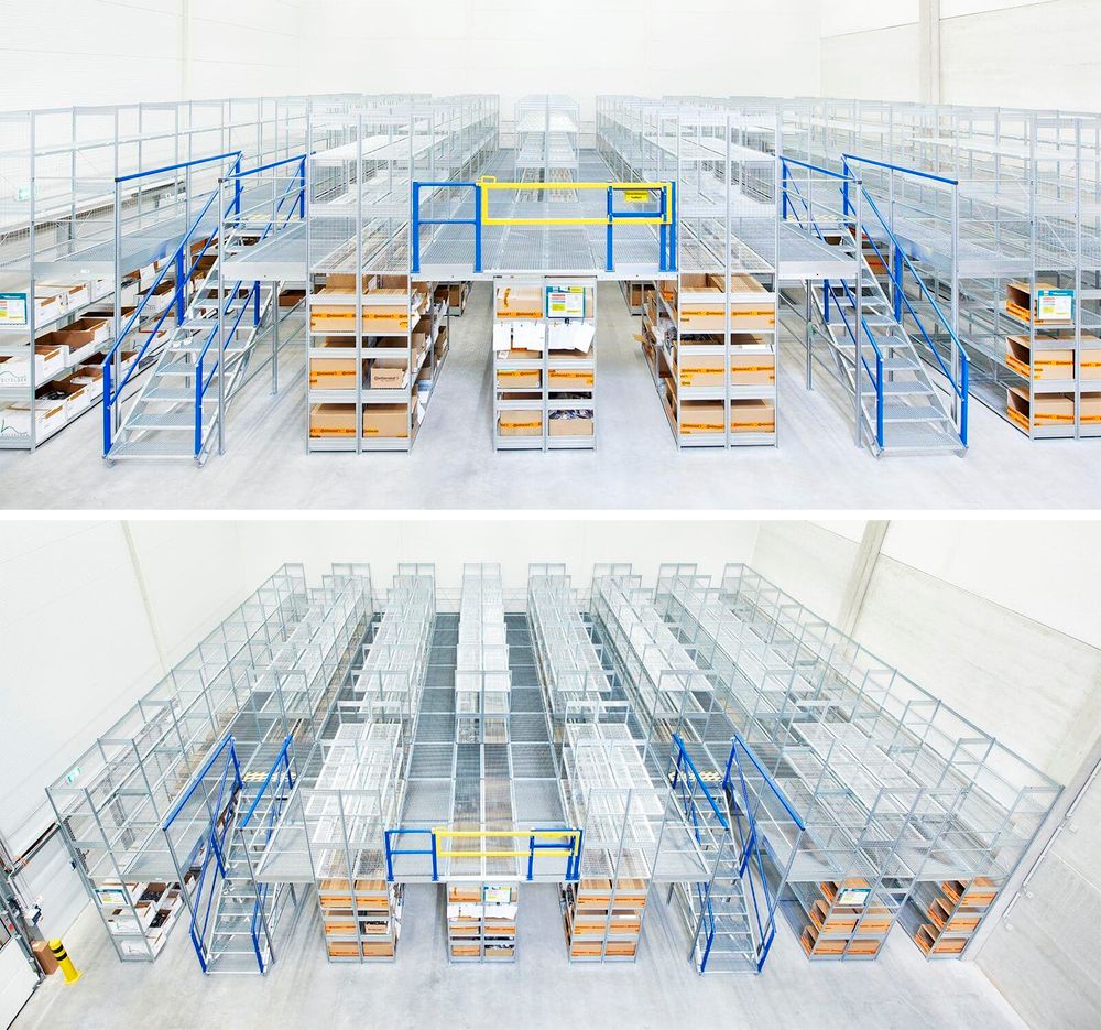 Las instalaciones, en varias plantas de altura. multiplican el espacio de almacenamiento con la misma superficie de suelo. Un aumento de la superficie de almacenaje a través de varios niveles acelera notablemente la gestión del almacén y ejecución de los pedidos.