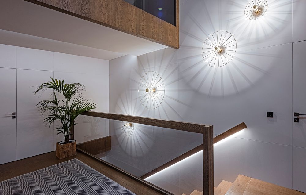 Escalera con pasamanos retroiluminado y apliques pared luz indirecta CírculoCuadrado o Eficiencia energética: El uso de bombillas LED nos ayudará a ahorrar energía y reducir los costos a largo plazo.