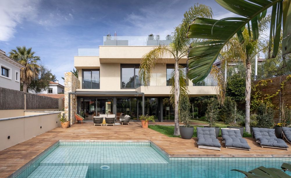 Fachada principal proyecto "Refugio Mediterráneo" de CírculoCuadrado Studio Abierta al paisaje y con vistas al mar, esta vivienda en Sitges, proyectada por los interioristas