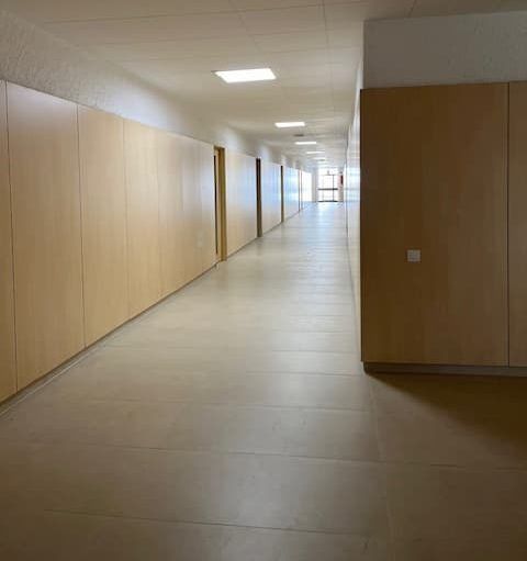 puertas compact y revestimiento fenólico en aulas, sala de actos y aseos .