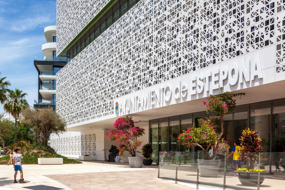 La constante exposición de los edificios a la luz solar directa plantea un desafío al que se debe prestar atención. Por esta razón, la solución elegida para el nuevo Ayuntamiento de Estepona ha sido la instalación de una celosía que protege térmicamente al edificio de la radiación solar directa. Esta celosía actúa como un tejido de luz y sombra, filtrando la luz de manera delicada y abrazando la estructura con elegancia.