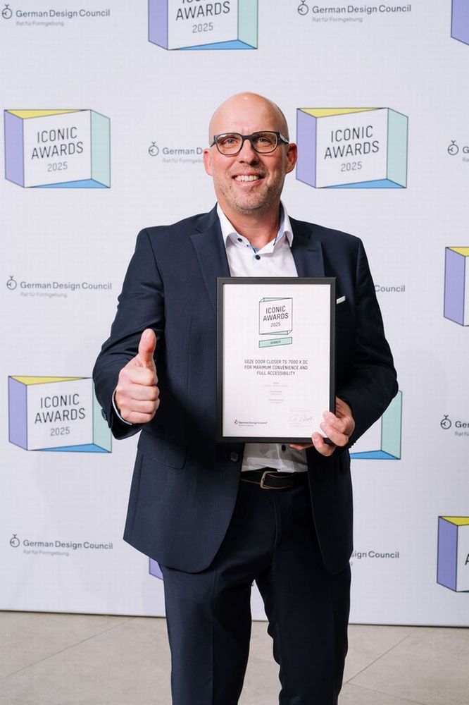 «El galardón ICONIC AWARD 2025 otorgado a nuestra nueva generación de cierrapuertas es un gran reconocimiento a nuestro objetivo de combinar funcionalidad, comodidad y diseño», afirma Patric Schlecht, Director Development en GEZE, quien recogió el premio el 7 de octubre. «Ahora estamos aún más ilusionados porque nuestros clientes puedan pronto probar por sí mismos el TS 7000».