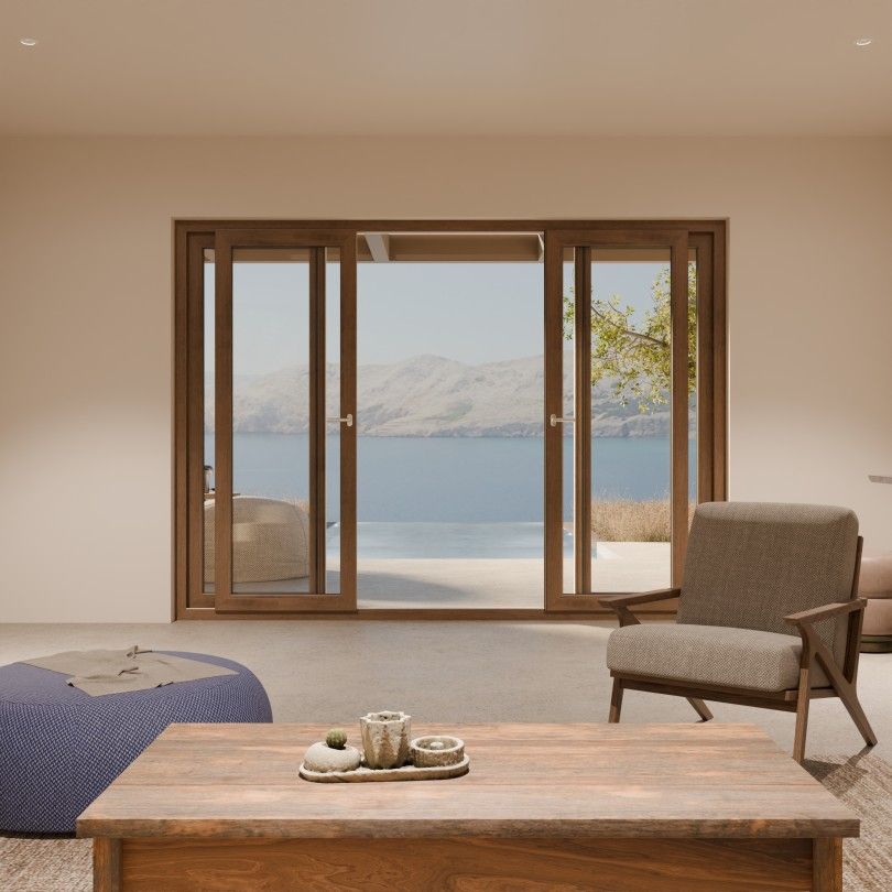 El movimiento deslizante de las hojas es fluido y silencioso, incluso en versiones de gran tamaño. Los perfiles finos enmarcan la vista sin obstaculizarla, y la altura contenida de las traviesas (20 mm en doble hoja y 27,5 mm en modelos de tres tramos) contribuye a una estética limpia, contemporánea y ligera. Ofrece múltiples configuraciones de apertura adaptándose a distintas necesidades de uso y diseño. El resultado es un sistema que potencia la luz natural y conecta los espacios interiores y exteriores con una elegancia discreta.