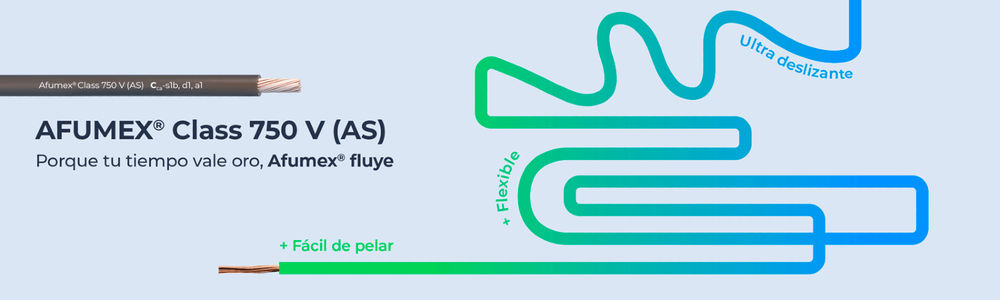 Landing evolución Afumex® Class 750 V (AS) Landing evolución Exzhellent® Class 750 V (AS) Máxima eficiencia y facilidad de instalación Los nuevos diseños de Afumex® Class 750 V (AS) y Exzhellent® Class 750 V (AS) permiten una instalación más rápida, sencilla y segura gracias a su mayor capacidad de deslizamiento, que facilita el manejo y reduce los tiempos de trabajo. Esta mejora es el resultado de una importante inversión en I+D+i, enfocada en optimizar el rendimiento del producto y en mejorar la experiencia del instalador profesional.