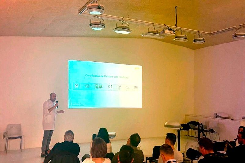 Javier Álvarez, director de Calidad, en su ponencia sobre certificados de gestión y producto, fundamentales para garantizar la calidad y la excelencia operativa. Durante la visita a la planta de producción, al Laboratorio de Certificación y al showroom, se presentaron innovaciones exclusivas como el Difusor Confort®, la Clase II+ antielectrocución y el Disipador Laminar®, soluciones que reflejan el compromiso de la compañía con la excelencia técnica, la eficiencia energética y la sostenibilidad.
