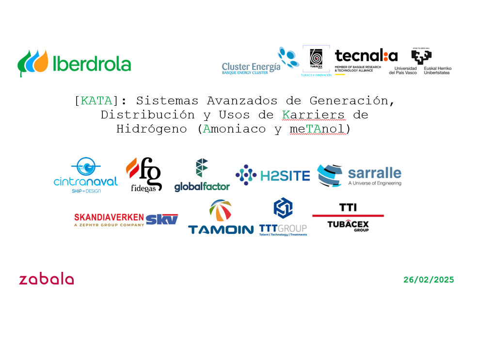 Con esta primera anualidad se presentan los avances de los socios en relación al Proyecto KATA con el apoyo del programa HAZITEK del Departamento de Desarrollo Económico Sostenibilidad y Medio Ambiente del Gobierno Vasco, en relación a Sistemas Avanzados de Generación, Distribución y Usos de Karriers de Hidrógeno (Amoniaco y meTAno).