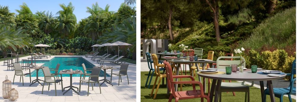 la nueva gama de mobiliario exterior de Grosfillex es 100% reciclable y encarna la sencillez del día a día para los profesionales de la restauración. Gracias a sus curvas de confort en asientos y respaldos es totalmente ergonómica. Otras características muy bien valoradas por los profesionales del sector hostelero y del camping es que es robusta y silenciosa. También es muy práctica al ser apilable, ligera y de fácil manejo y destaca por su bajo mantenimiento y por su durabilidad. Una colección completa de mobiliario destinada a los usuarios más exigentes.