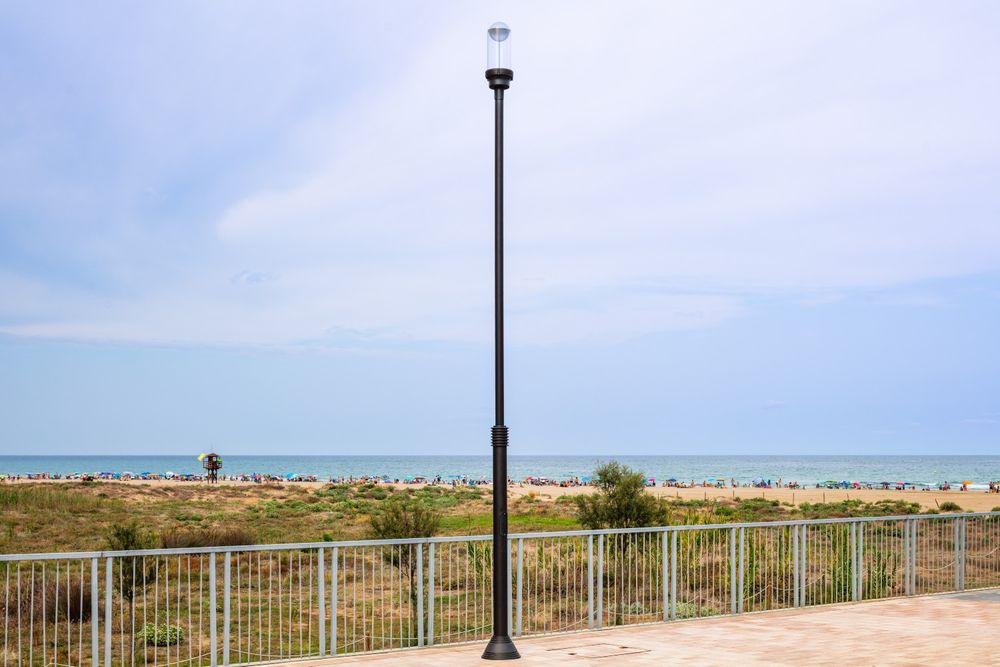 Iluminación especializada en entornos litorales, resistente a condiciones extremas. Un entorno de alto valor urbano y desafío técnico El paseo marítimo de Sagunto está situado en una de las zonas más expuestas a la corrosión salina del litoral mediterráneo. La presencia constante de ion cloruro, el viento marino y la humedad ambiental aceleran la degradación de los materiales metálicos, reduciendo su vida útil y multiplicando los costes de mantenimiento.