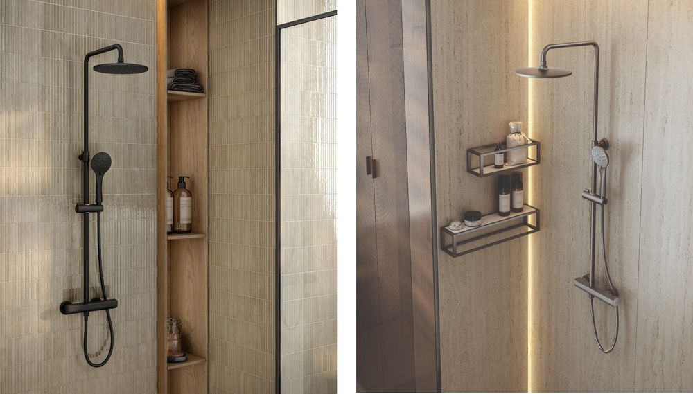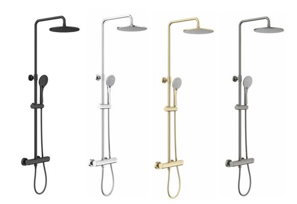 Los diferentes acabados de esta novedosa columna de ducha ofrecen un plus de versatilidad Un producto a la vanguardia de la innovación Se trata de columnas monomando extensibles con kit acabado negro mate o cromado de alta calidad. Se suministran con rociador orientable, mango de ducha con 3 funciones, soporte de ducha deslizante y orientable y flexo de ducha de 1.5 metros en PVC acabado negro o en acero inoxidable cromado, según modelo.
