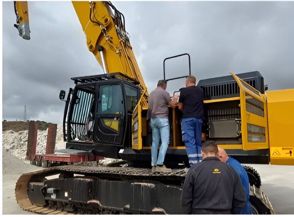 Representantes de MOVITRANS y SANY Iberia realizan la entrega y formación técnica de la SY500HRD. SANY Iberia ha formalizado la entrega de una excavadora de demolición