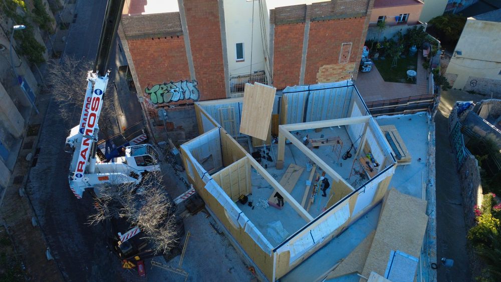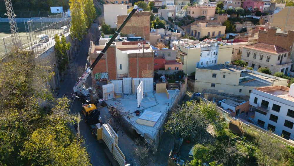 Un momento del montaje de la vivienda industrializada de Arquima en Barcelona La compañía especialista en Construcción Industrializada Premium