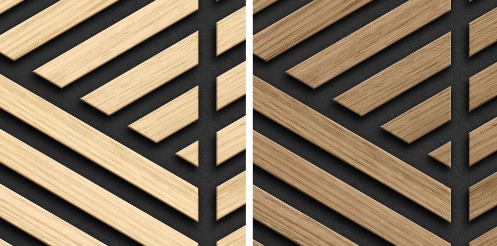 Detalle diseño Linio Graphic Ash / Detalle diseño Linio Graphic Light Oak Paneles híbridos e hidrófugos Los nuevos paneles decorativos híbridos