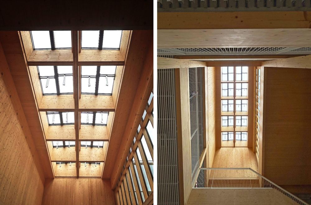 Los sistemas de doble compuerta permiten la evacuación de humos y la entrada de luz natural en el átrio, cumpliendo con la norma EN 12101-2 y garantizando eficiencia energética y confort térmico