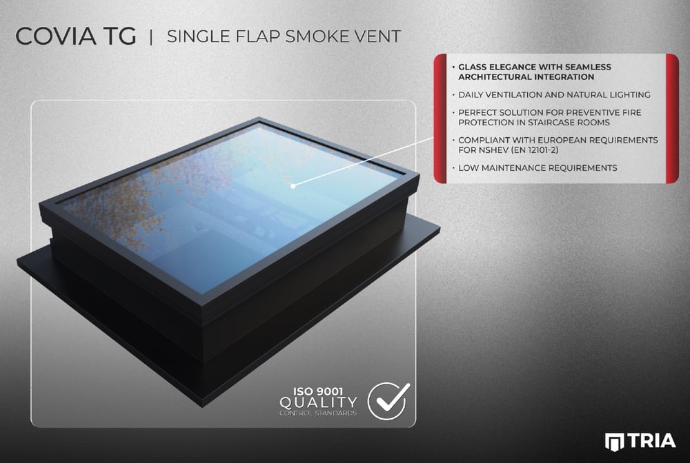 COVIA TG ha sido diseñado para proyectos arquitectónicos que requieren tanto seguridad contra incendios como versatilidad en el diseño. Ofrece ventilación diaria combinada con una iluminación natural óptima, lo que lo convierte en la solución ideal para techos, bóvedas de cañón y sistemas de iluminación natural.