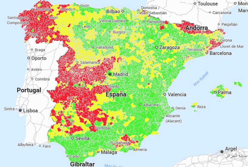 clasificación territorial establecida por el mapa de potencial de radón del Consejo de Seguridad Nuclear (CSN) , que divide el territorio nacional en dos zonas según el nivel estimado de radón procedente del terreno: