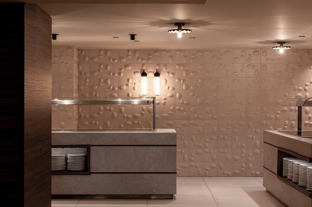 En su proyecto del Hotel Aubamar en Palma de Mallorca, donde se respira luz, calma y textura, el estudio Felip Polar ha confiado en el revestimiento Pecas para definir la atmósfera de su restaurante bufet, una combinación de diseño sensorial y materialidad artesanal.