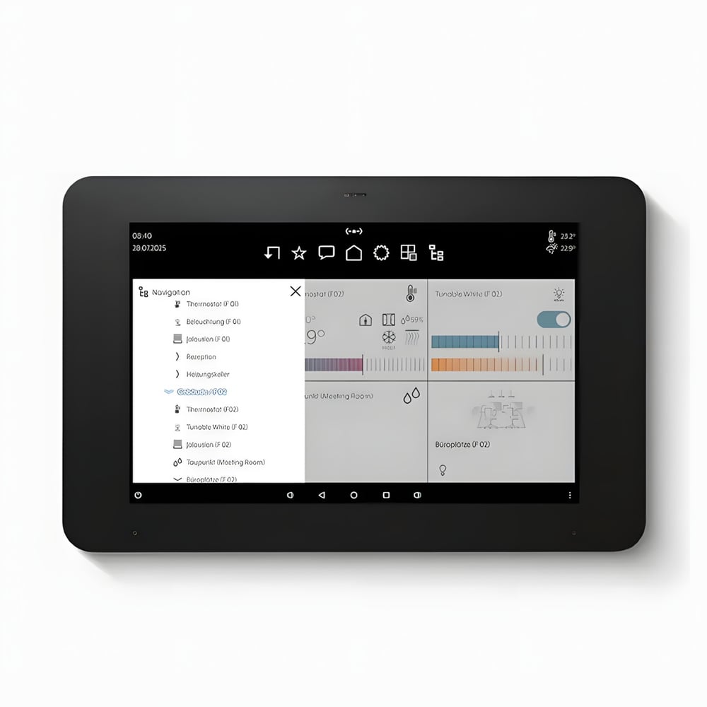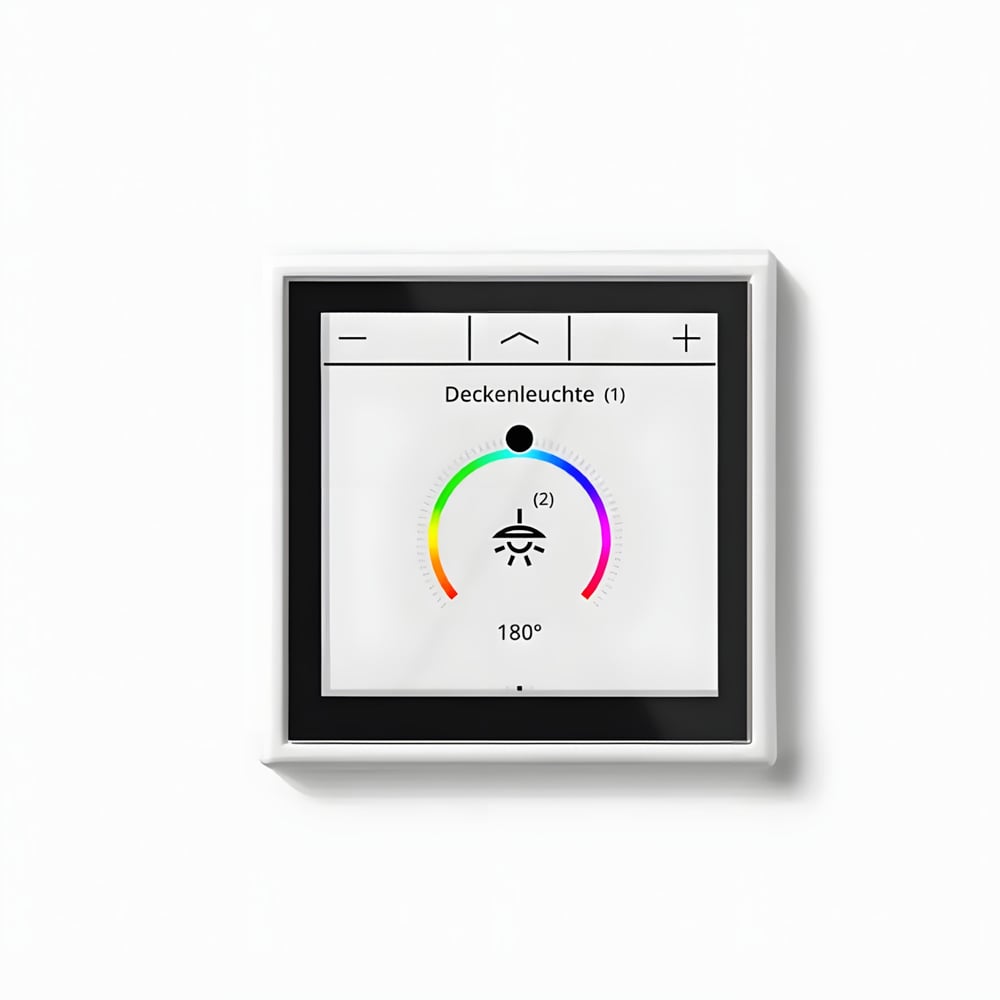 JUNG aborda este año una actualización significativa del controlador de estancia LS TOUCH . La nueva versión 2.0 de este dispositivo incorpora una pantalla táctil de alta resolución que permite gestionar hasta 32 funciones KNX de forma directa y visual. Su sensor de proximidad integrado activa la pantalla de manera automática cuando detecta presencia, garantizando un consumo energético eficiente. La navegación por sus menús es intuitiva, permitiendo al usuario ajustar escenas de iluminación o temperatura con precisión.