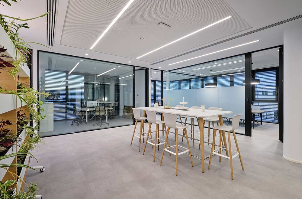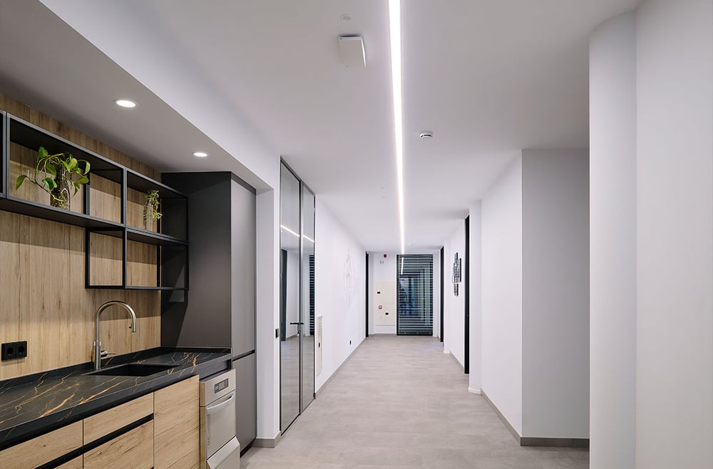Winterhalter ha confiado en TRILUX , multinacional alemana especializada en soluciones de iluminación inteligente y sostenible. El resultado es un proyecto lumínico de última generación, completamente integrado en el sistema de control del edificio KNX, que garantiza un consumo optimizado, mayor confort visual y una atmósfera de trabajo saludable.