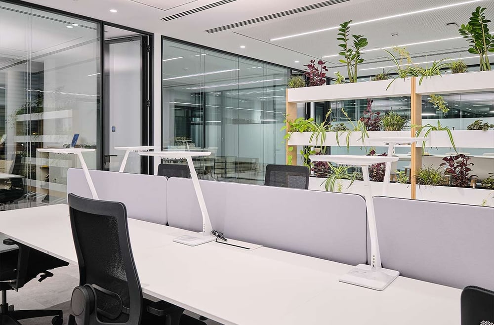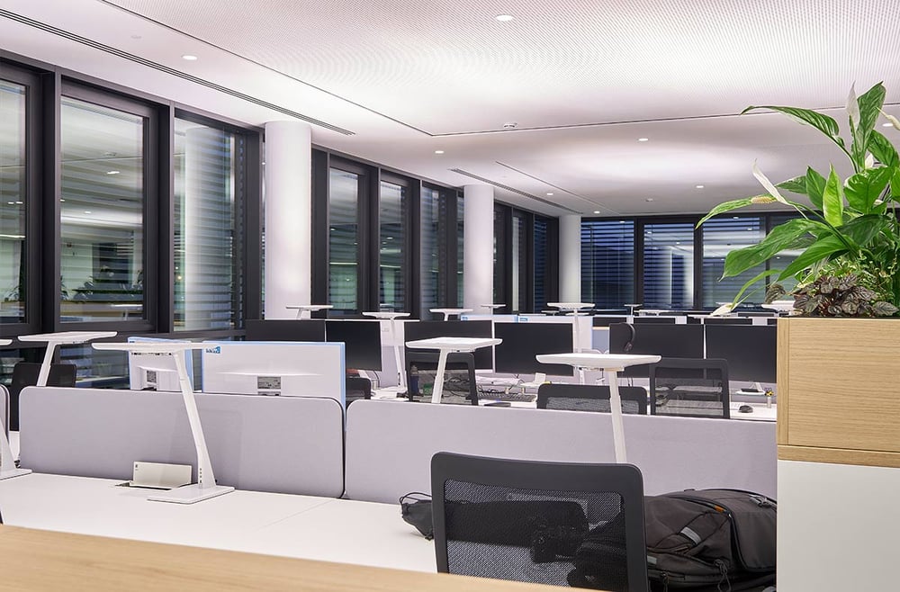 Bicult , instalada en más de un centenar de puestos de trabajo. Este modelo combina luz directa e indirecta regulable mediante el sistema LiveLink Workplace, que ajusta automáticamente la luminosidad y temperatura de color según los parámetros preestablecidos y la presencia detectada en el entorno. Además, incorpora la tecnología