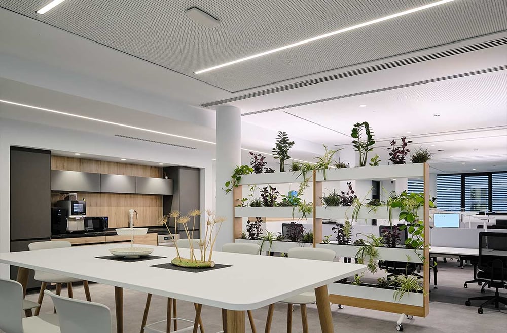 Human Centric Lighting (HCL) , que reproduce el ritmo natural de la luz diurna para maximizar el bienestar y la productividad de los empleados.