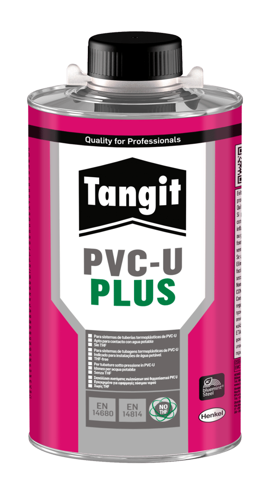 Tangit PVC-U PLUS presenta una solución versátil, apta para sistemas de PVC-U a presión (EN14814) y de no presión (EN14680) y está disponible en formato pincel en tres tamaños distintos: 250g, 500g y 1kg.