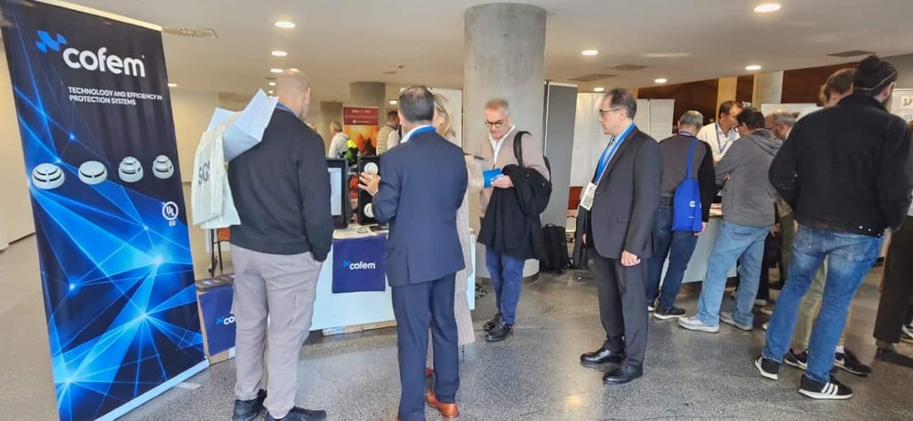 Antonio Vinuesa , director técnico de Cofem, quien compartió su conocimiento sobre las funcionalidades del Sistema de Detección y Alarma de Incendios (SDAI), poniendo especial énfasis en una tecnología que les diferencia claramente en el mercado: los detectores de incendio con funcionalidad integrada de alarma acústica y visual.