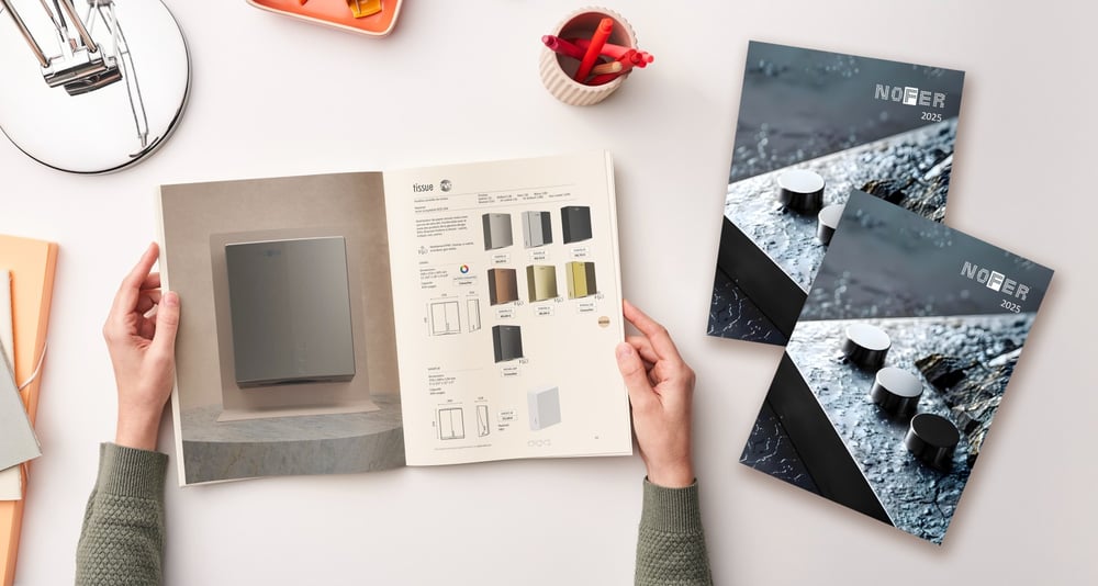 NOFER da un paso más ofreciendo la posibilidad de unificar griferías, accesorios, secamanos, dispensadores y mobiliario bajo un mismo lenguaje estético. Un concepto 360º que no solo aporta personalidad y sofisticación al espacio, sino que garantiza la máxima resistencia en baños de alto tránsito.