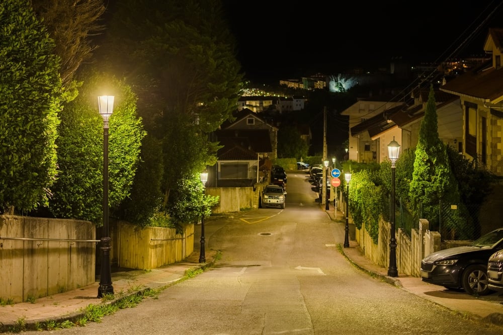 Renovación del alumbrado en zona residencial con solución LED eficiente y homogénea.