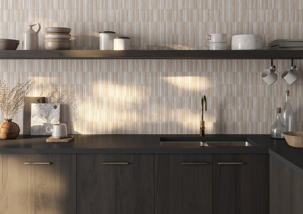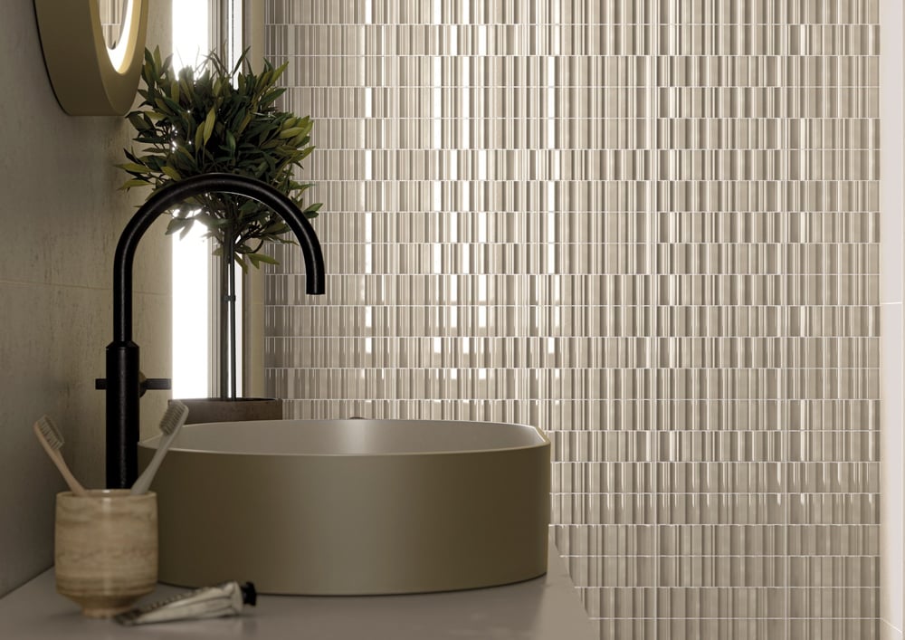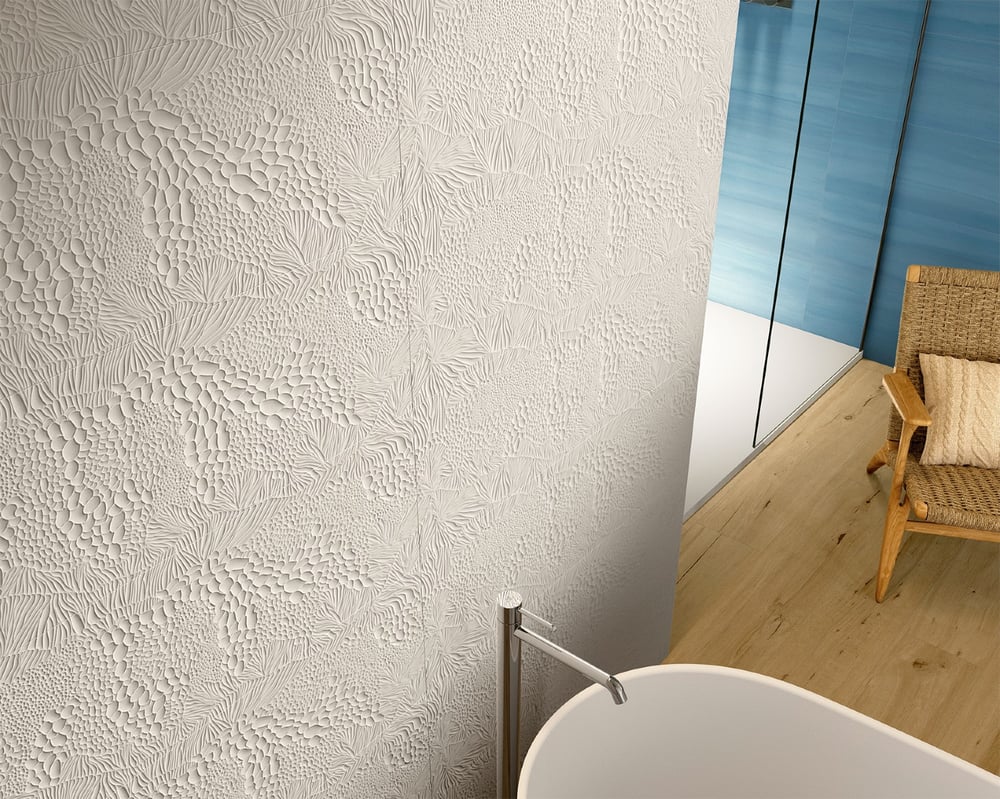 Las nuevas colecciones apuestan por revestimientos con relieve y acabados rugosos que invitan al tacto. Estas superficies no solo aportan profundidad y carácter, sino que redefinen los espacios como auténticas obras de arte táctiles.