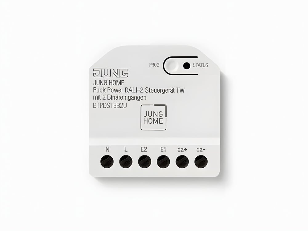 destaca el regulador Puck Power DALI-2 con tecnología Tunable White , que permite un ajuste preciso de la intensidad lumínica, así como el cambio de la temperatura de color de la luz. Así, el sistema puede pasar de una luz fría durante el día a tonos más cálidos para el horario nocturno. Se puede completar la instalación con el Puck actuador de conmutación de dos canales, el cual ofrece la posibilidad de gestionar circuitos independientes de luz o combinar una carga lumínica con una aplicación de calefacción.