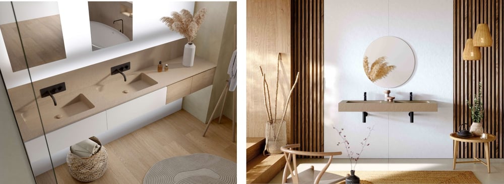 Superficies que transforman el espacio Las superficies juegan un papel fundamental a la hora de definir la identidad del baño. El