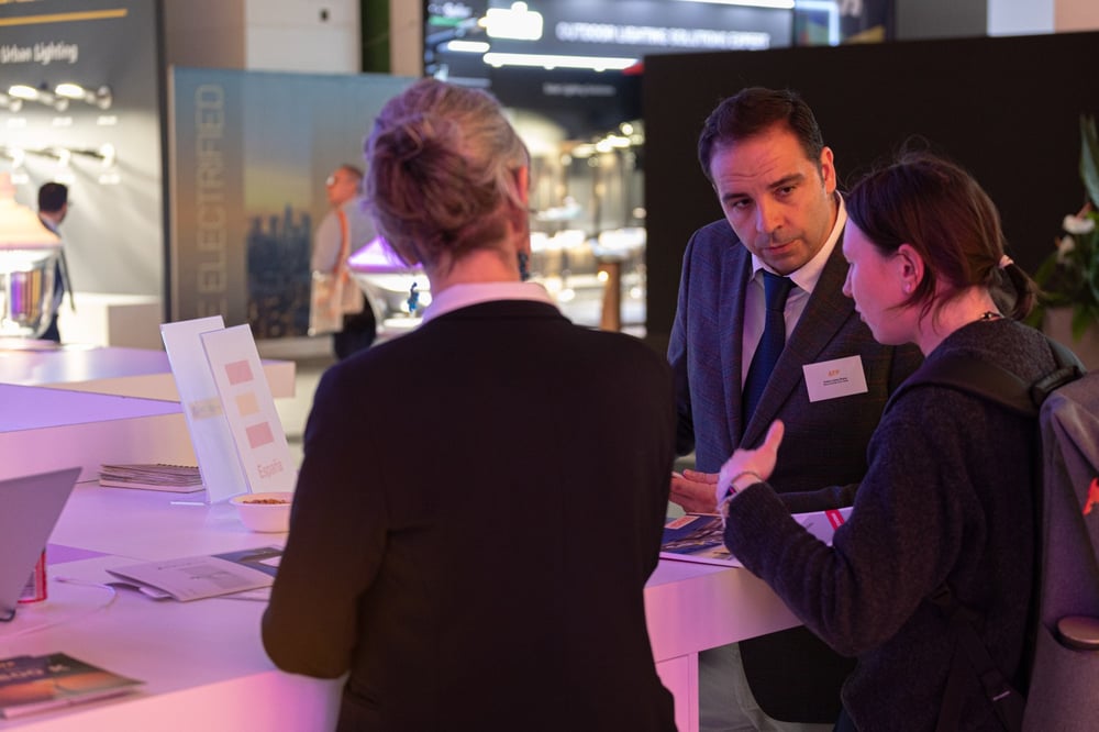 El director del departamento lumínico de ATP, Andrés Armañanzas interactuando con profesionales del sector durante Light + Building Frankfurt. La tecnología Color, integrada en la nueva serie, ha sido especialmente valorada por sus ventajas técnicas y su capacidad para generar ambientes dinámicos en entornos urbanos. Su aplicación mediante soluciones RGBW refuerza el compromiso de la compañía por una iluminación más flexible, creativa y eficiente.