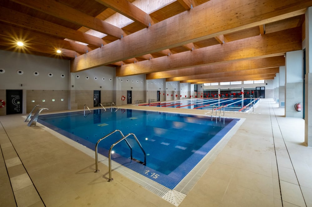 Piscina del Complex Lúdic Esportiu Municipal de Ascó. El proyecto arquitectónico ha sido desarrollado por Rosa M. Poyo Perelló (Estudi Arquitectura), quien ha diseñado un edificio que integra funcionalidad, bienestar y eficiencia energética.