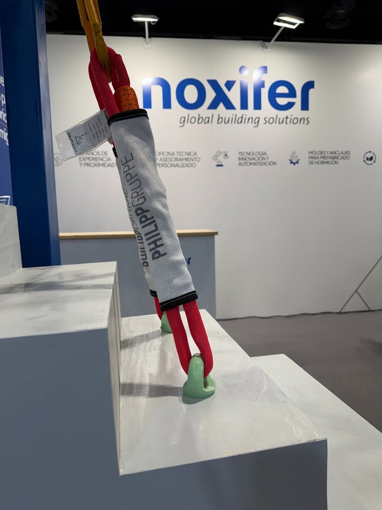 Dentro del grupo Noxifer, esta propuesta se ve reforzada por una sinergia única entre las líneas de negocio de moldes y anclajes —fabricados tanto en estándar como a medida— , permitiendo ofrecer una cobertura 360º al cliente en todo el proceso de industrialización. Para ello, uno de los productos que mostraban era el nivelador de cargas Ganterud, con una escalera prefabricada y todos los anclajes para la elevación y transporte específicos para facilitar la construcción e instalación de este tipo de elementos en obra. De esta forma,