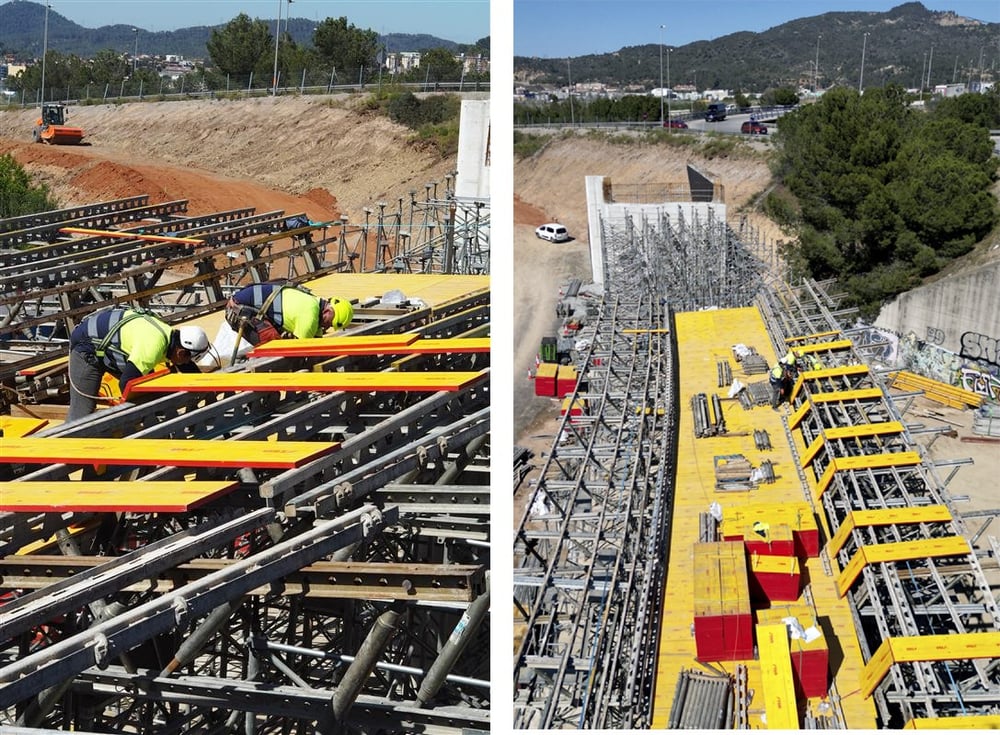 Esta disposición reduce la deformación, evita el alabeo y mejora su resistencia mecánica frente a las cargas del hormigón fresco.