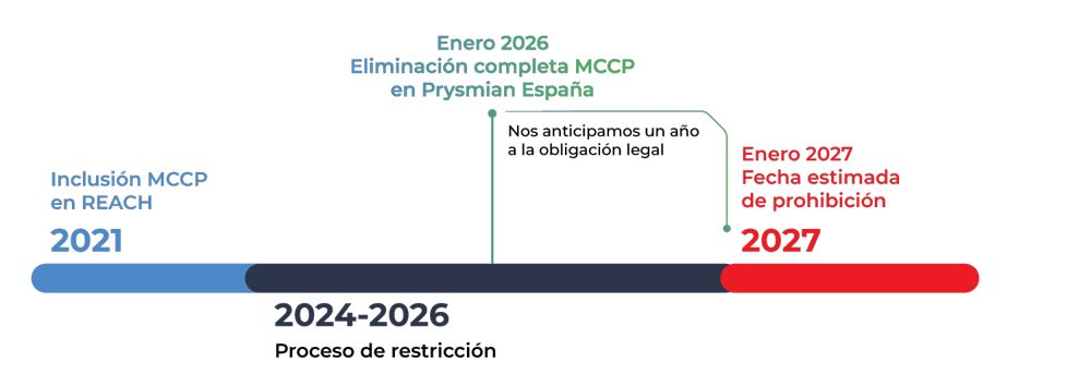 Prysmian ha decidido adelantarse a estos plazos, garantizando desde hoy el cumplimiento futuro de la normativa. Un paso firme hacia la sostenibilidad La supresión de las MCCP está plenamente alineada con los
