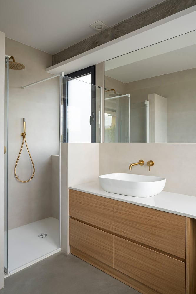 Uno de los elementos más destacados de la vivienda es el pavimento interior, resuelto con la solución weberfloor design de Weber, un mortero autonivelante polimérico coloreado mineral diseñado para la ejecución de pavimentos continuos decorativos. Esta solución, aplicada en 170 m² de la vivienda, ofrece múltiples posibilidades cromáticas y proporciona un acabado continuo, cálido e innovador.