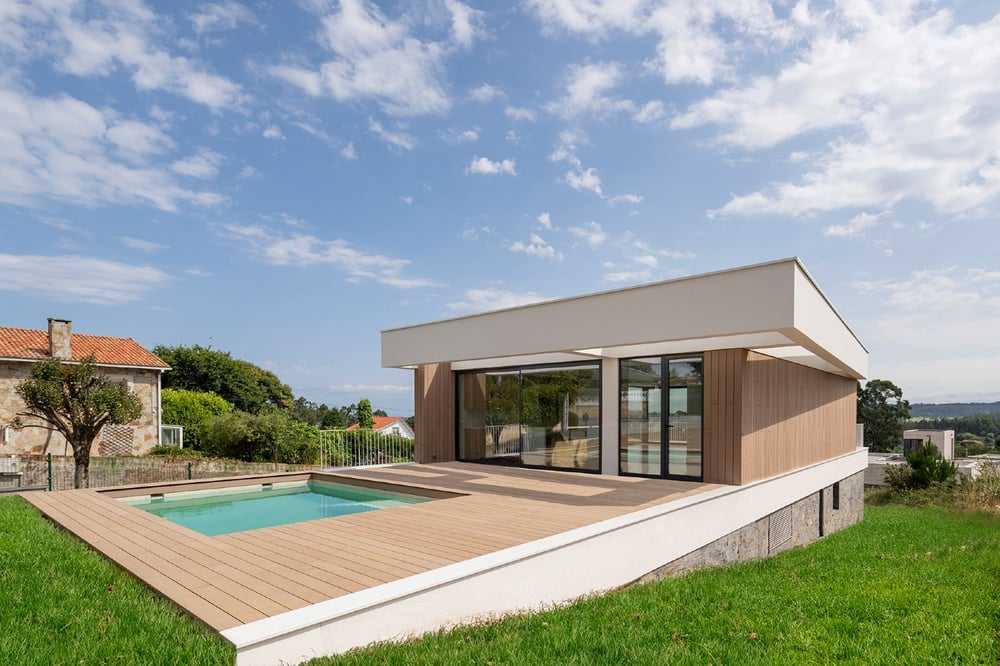 Este proyecto ha sido concebido bajo criterios de diseño energético pasivo por el Estudio Plata Arquitectos, priorizando el confort térmico, la eficiencia energética y la integración con el entorno. El proyecto destaca por una arquitectura contemporánea, plenamente conectada con el paisaje gallego. Con una superficie de 260 m², la vivienda se articula en torno a dos grandes plataformas elevadas y un pódium de pizarra natural que definen su identidad estética y refuerzan su comportamiento bioclimático. Esta organización espacial permite adaptarse de forma eficiente al clima local, optimizar el aprovechamiento de la radiación solar y mejorar el confort interior durante todo el año.