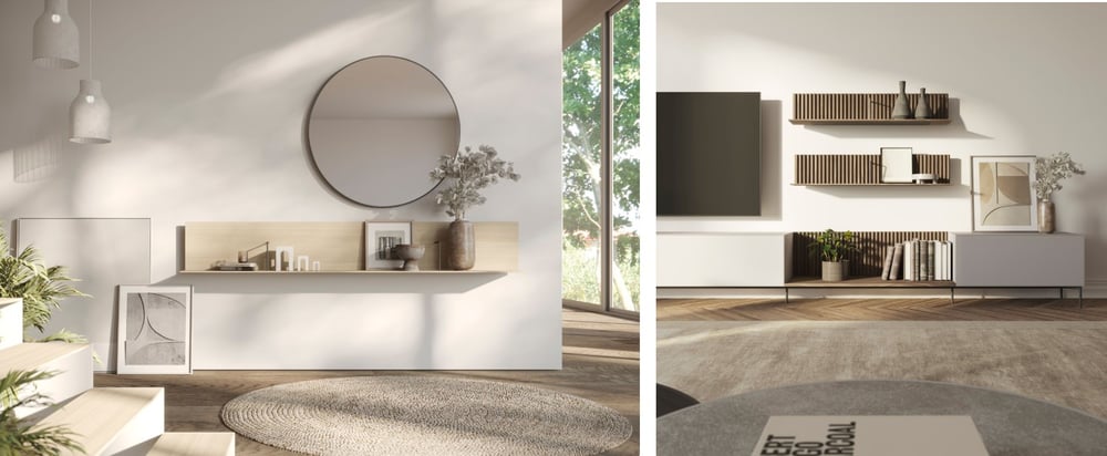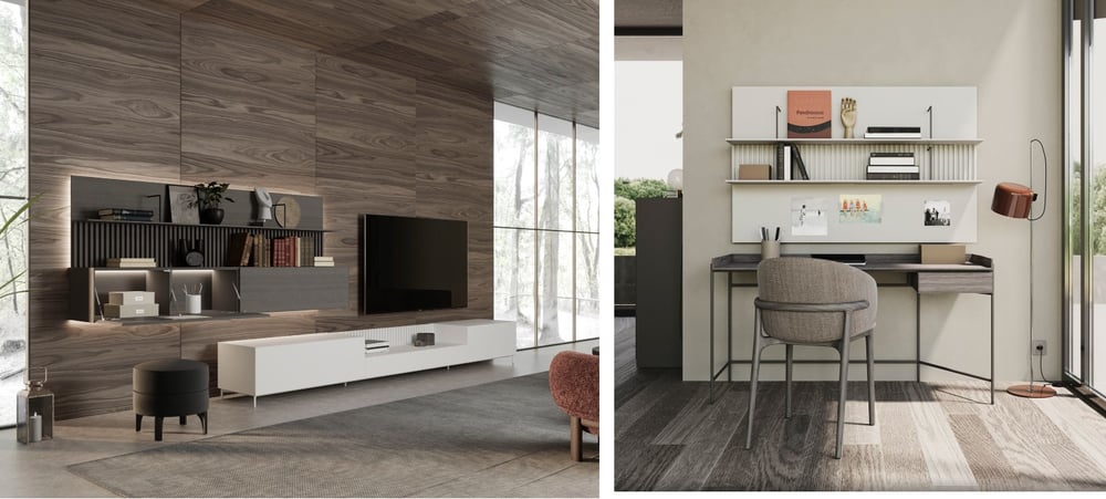 ART funcione con naturalidad en distintos contextos: desde composiciones en el salón que integran zonas de televisión y almacenamiento, hasta soluciones para espacios de trabajo doméstico donde orden y funcionalidad conviven de forma equilibrada.