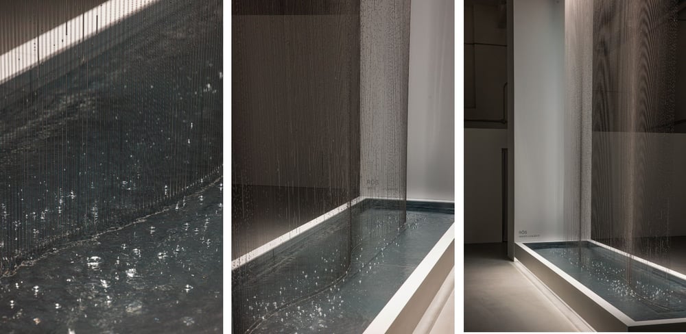 En la Semana del Diseño de Milán, el estudio suizo de arquitectura y diseño atelier oï traslada esta competencia principal de Geberit a una interacción sensorial de agua, luz, sonido y movimiento. La instalación temporal, conocida como RŌS, consta de unos 300 finos muelles de acero inoxidable extendidos por el espacio para formar una estructura brillante. Las gotas de agua se deslizan a lo largo de los muelles siguiendo trayectorias definidas, pero su comportamiento sigue siendo variable: a veces rápido, a veces lento, deteniéndose, dividiéndose o fusionándose. El resultado es una tensión entre precisión y poesía, entre guía técnica y libertad vital. «Nos interesa la interacción entre control y libertad. Cuando el agua muestra su carácter y sigue formando parte de una estructura, emerge una belleza especial», afirma Aurel Aebi, cofundador de atelier oï.